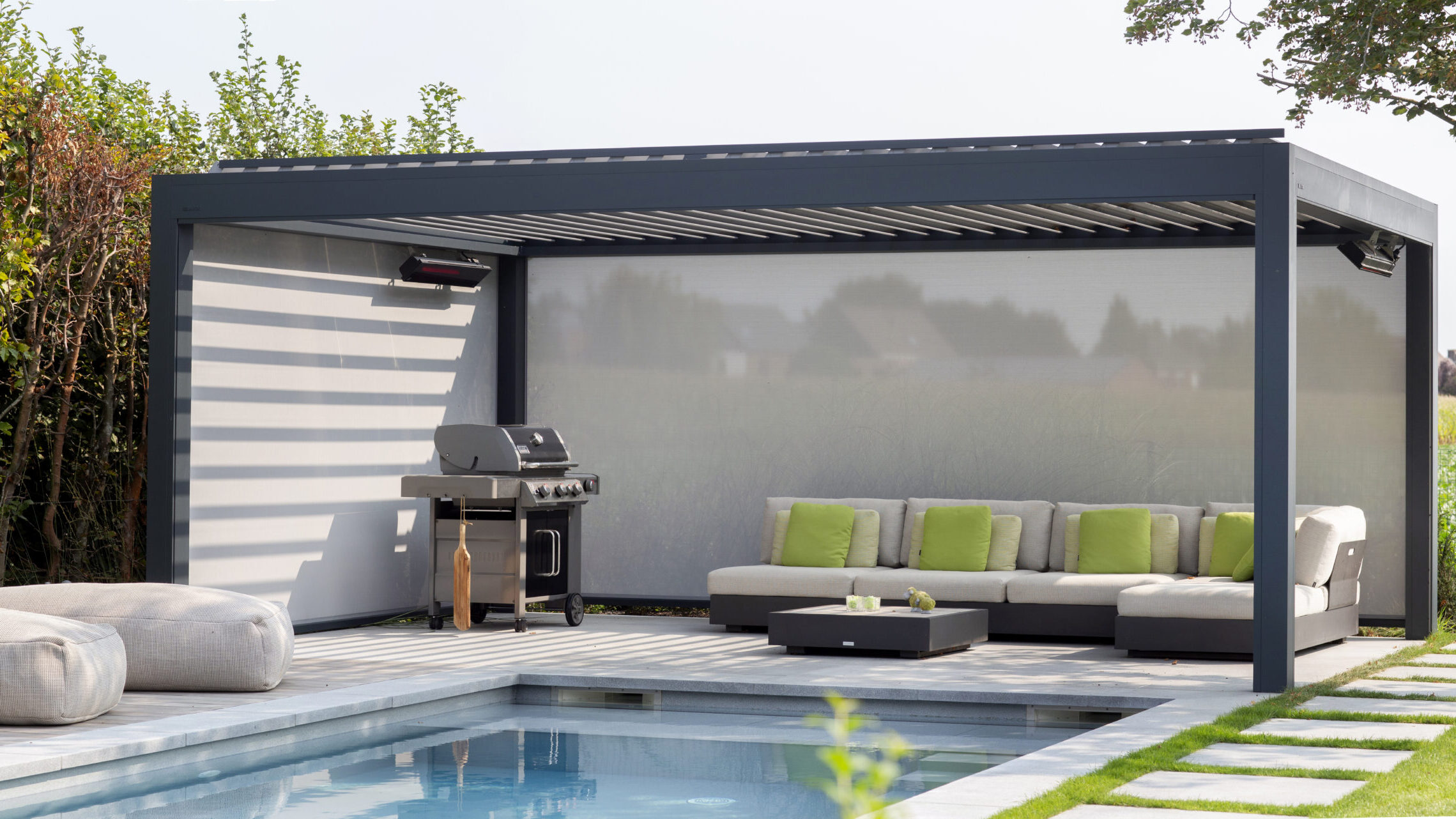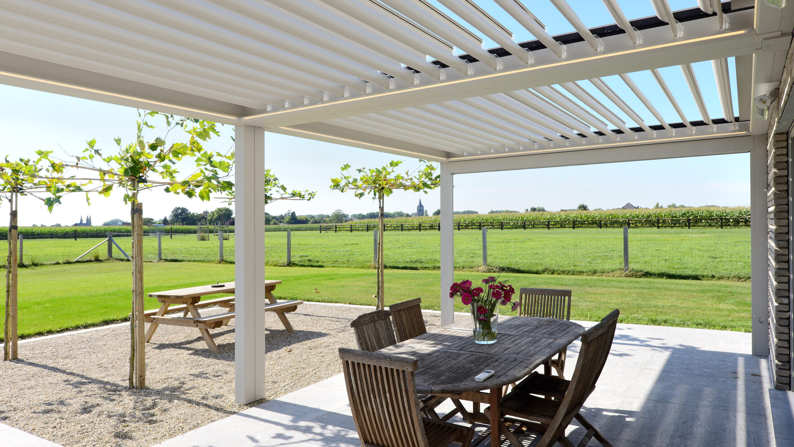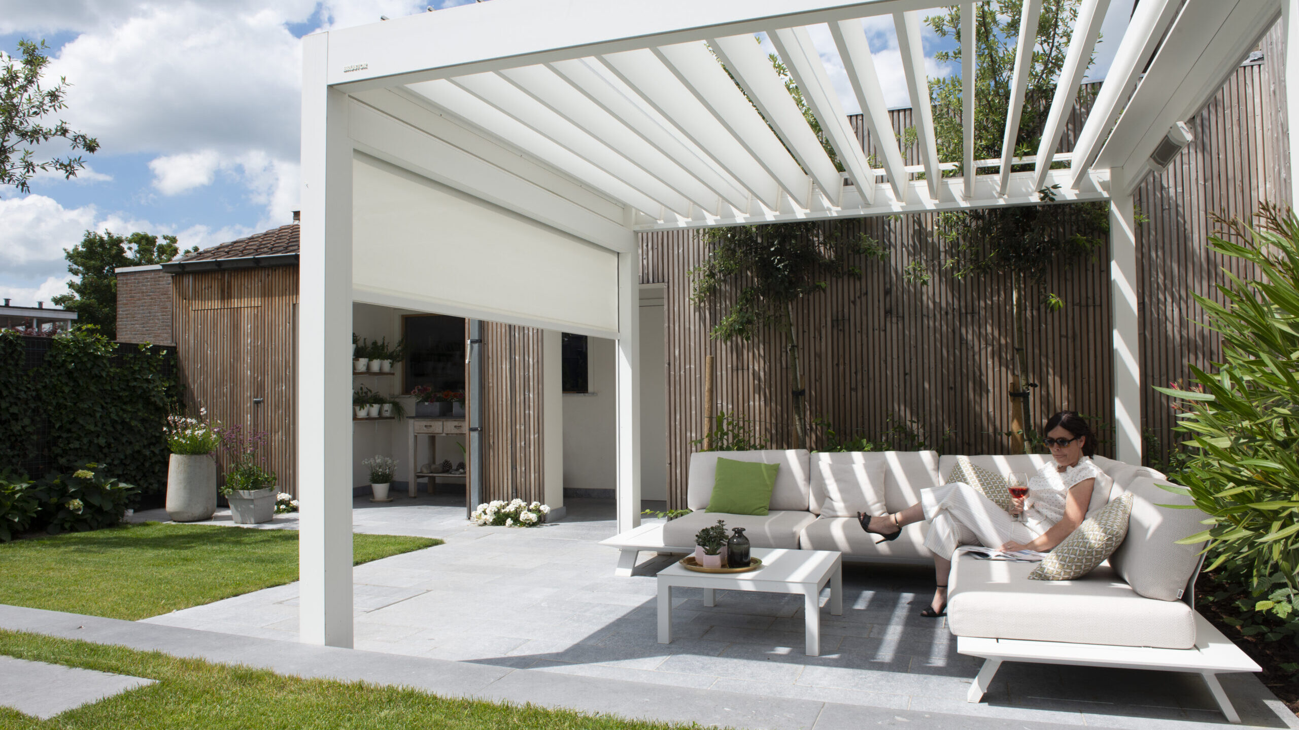 De kleur van het frame en de lamellen of het doek kies je volledig zelf. Stem de kleur bijvoorbeeld af op het kleur van de ramen. De ruime mogelijkheden om je terrasoverkapping te personaliseren zorgen ervoor dat het echt jouw persoonlijke zonwering wordt: ledverlichting voor een sfeervol effect, verwarming voor koele avonden, geïntegreerde screens, glasschuifwanden of een kozijn met veiligheidsglas om de voor of zijkanten wind- en zonvrij te maken, luidsprekers om je favoriete muziek ook buiten op het terras te beluisteren of verschillende sensoren die de zonwering automatisch regelen. Wat wil een mens nog meer?