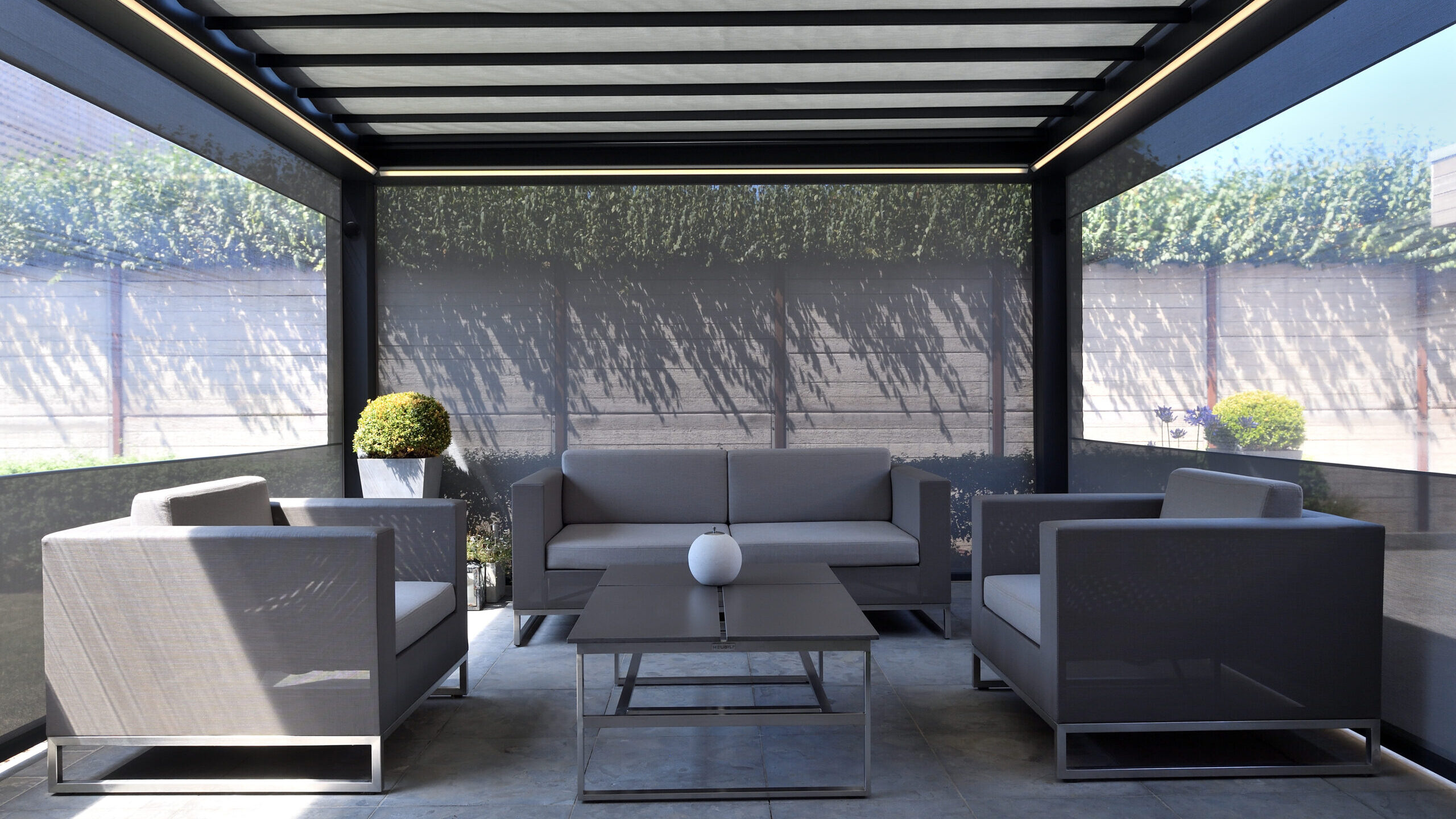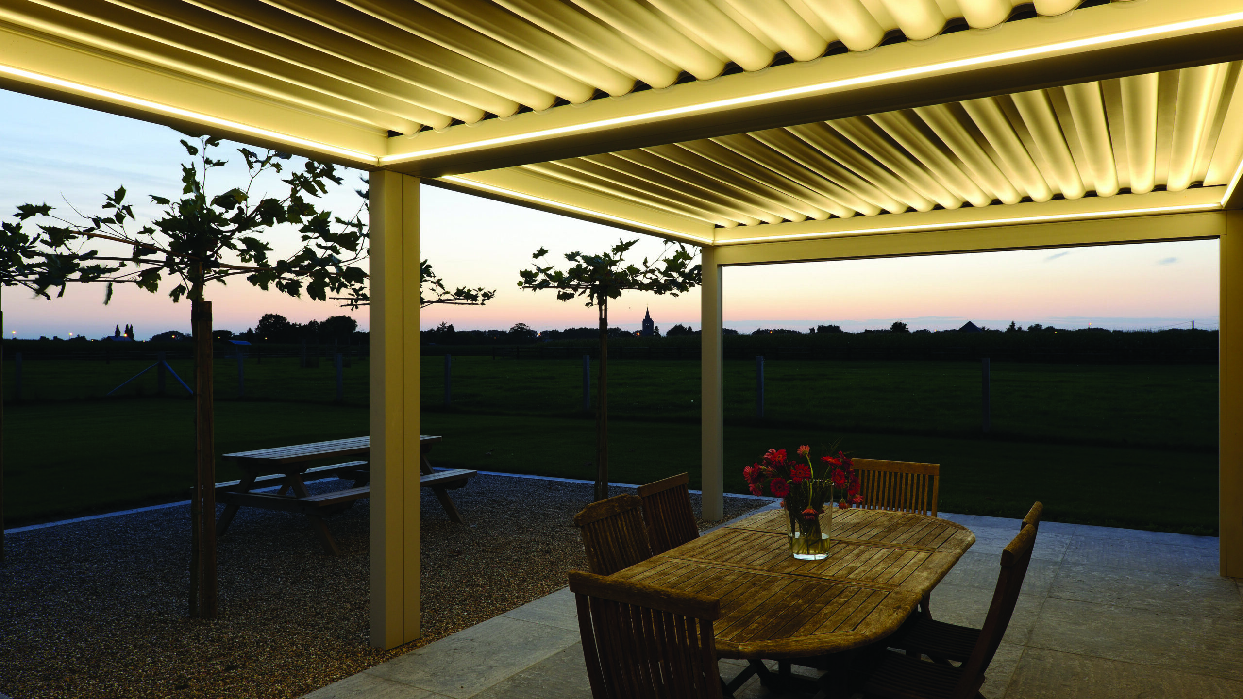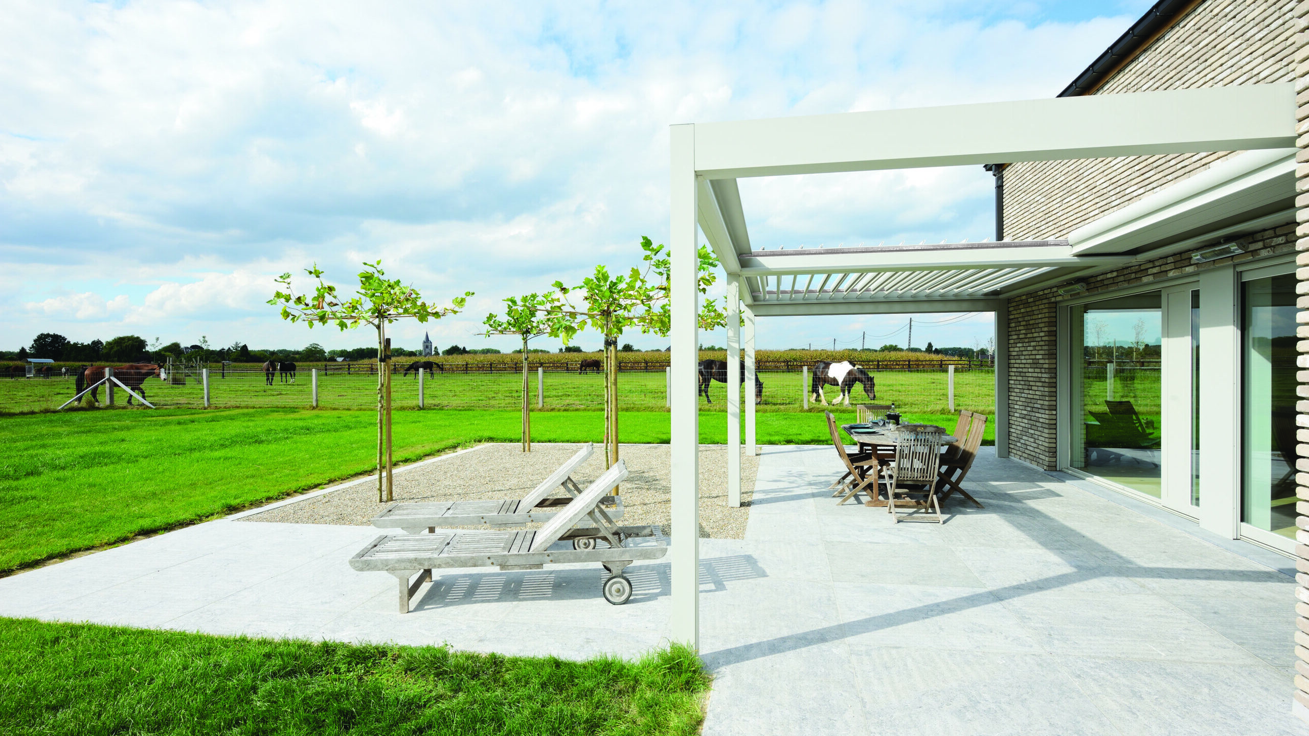 De kleur van het frame en de lamellen of het doek kies je volledig zelf. Stem de kleur bijvoorbeeld af op het kleur van de ramen. De ruime mogelijkheden om je terrasoverkapping te personaliseren zorgen ervoor dat het echt jouw persoonlijke zonwering wordt: ledverlichting voor een sfeervol effect, verwarming voor koele avonden, geïntegreerde screens, glasschuifwanden of een kozijn met veiligheidsglas om de voor of zijkanten wind- en zonvrij te maken, luidsprekers om je favoriete muziek ook buiten op het terras te beluisteren of verschillende sensoren die de zonwering automatisch regelen. Wat wil een mens nog meer?