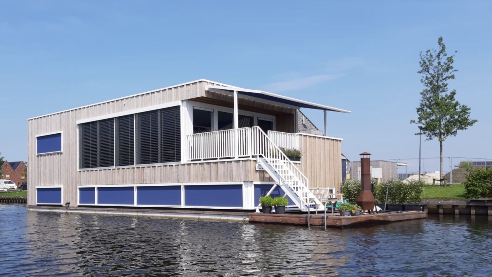 Screens, buitenjaloezieën en pergola zonwering. Woonboot Urk
